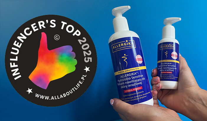 Z dumą informujemy, że balsam Allergika Hydrolotio Sensitive został Laureatem Plebiscytu Influencer’s Top 2025! To wyjątkowe wyróżnienie przyznawane jest produktom, które zostały dokładnie przetestowane przez szerokie grono influencerów. Plebiscyt Influencer’s Top to już 13. edycja jednej z najbardziej rozpoznawalnych akcji konsumenckich w Polsce. Jego znak to gwarancja jakości i zaufania, że wyróżniony produkt warto kupić. Nagroda dla Allergika Hydrolotio Sensitive to dla nas ogromne wyróżnienie i potwierdzenie, że nasza formuła – stworzona z myślą o najbardziej wrażliwej, atopowej skórze –pomaga i spełnia oczekiwania użytkowników.