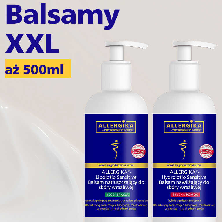 ALLERGIKA® to także dermokosmetyki do pielęgnacji wrażliwej i podrażnionej skóry. Nasze produkty, takie jak balsamy do ciała Lipolotio i Hydrolotio Sensitive wzmacniają barierę ochronną skóry i zapobiegają powstawaniu poważniejszych schorzeń, jak łuszczyca czy egzema.