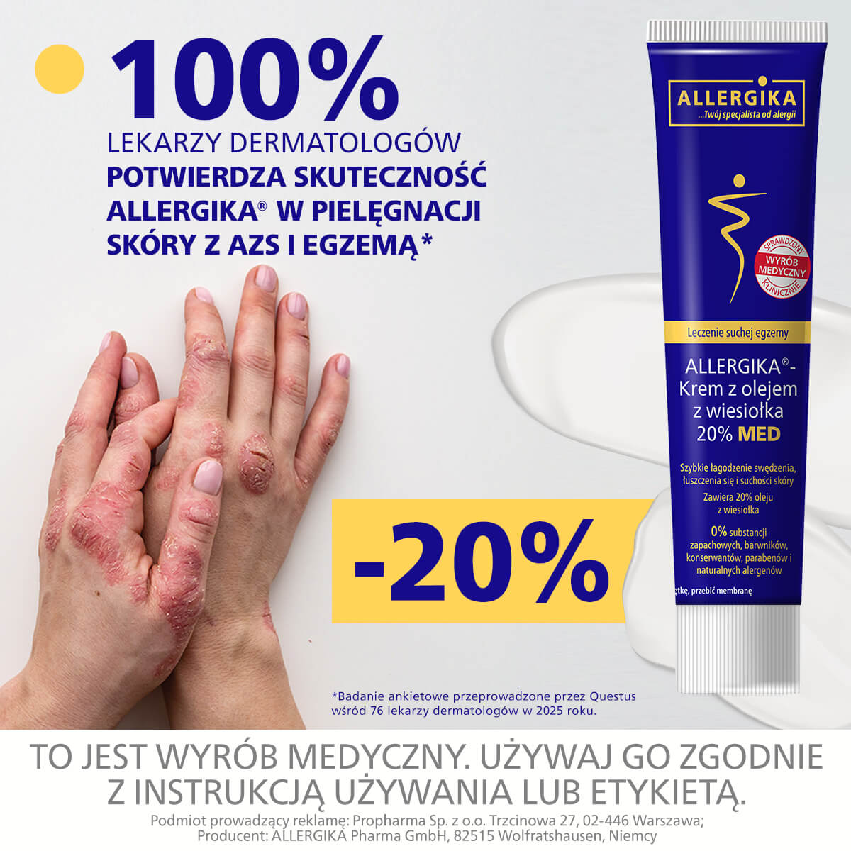 Co wyróżnia produkty ALLERGIKA® na tle innych preparatów do pielęgnacji i skóry? ALLERGIKA® to marka oferująca wyroby medyczne, których skuteczność w przeciwdziałaniu i zwalczaniu objawów egzemy takich jak zaczerwienienie, swędzenie czy łuszczenie została potwierdzona badaniami klinicznymi!